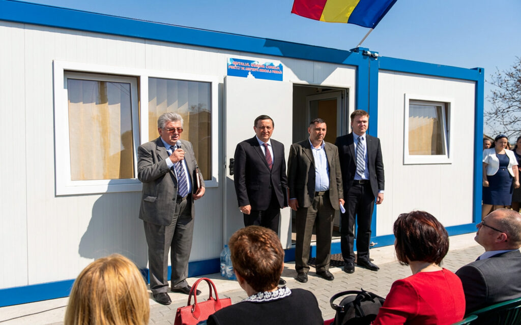 Se construiește prima clădire provizorie, compusă din trei containere modulare.